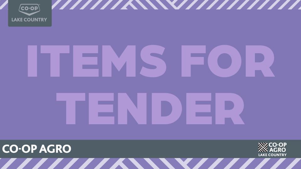 For sale by tender, Lake Country Co-op is accepting bids on the following items below. The highest bid will not necessarily be accepted. Bids should include the item you are bidding on, your name, bid amount, and phone number. Those interested can email their bid to the individual below associated with the item by June 10, 2025. If you are interested in an item and would like further information, please email the associated individual.