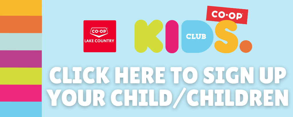 The Lake Country Co-op Kids Club is an exclusive program and FREE for kids 12 and under to join!