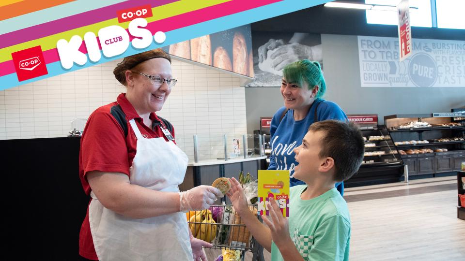 The Co-op Kids Club welcomes kids ages 12 and under to join. By becoming a Kids Club member, you score a bunch of awesome advantages and it’s easy as pie to sign up! Have Mom, Dad or your guardian sign at one of our New Horizon locations or: