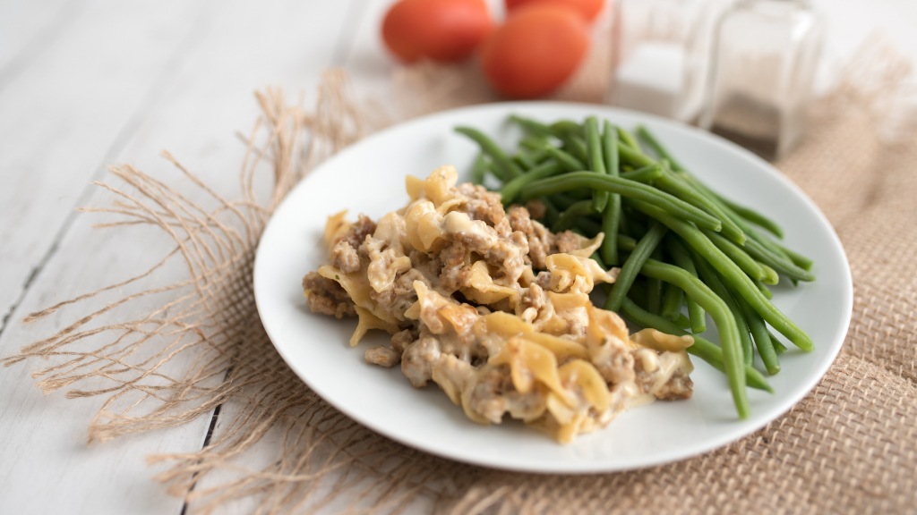 Cook egg noodles according to package directions, then add stroganoff over noodles to serve.