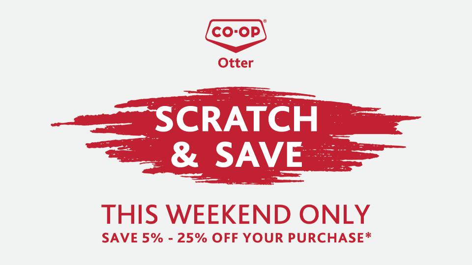 Scratch & Save cards are given out at the time of purchase. Card valid only for items selected prior to seal removal. Discounts limited to a maximum of $100.00, including taxes. Discounts will not apply to prescriptions, tobacco, postage, gift cards, lottery tickets, agricultural & commercial pesticides, veterinary drugs & wormers, previously quoted package or special prices and metal roofing & bundles of posts. Discounts may be limited to in-stock items. All applicable taxes will be based on the selling price prior to discount. No substitutions or rainchecks. Discount is not applicable on items marked final clearance or red hot deals, and cannot be combined with any other existing promotions or offers.