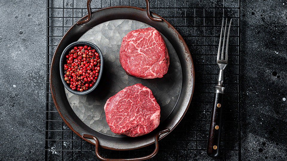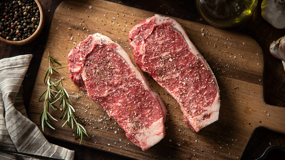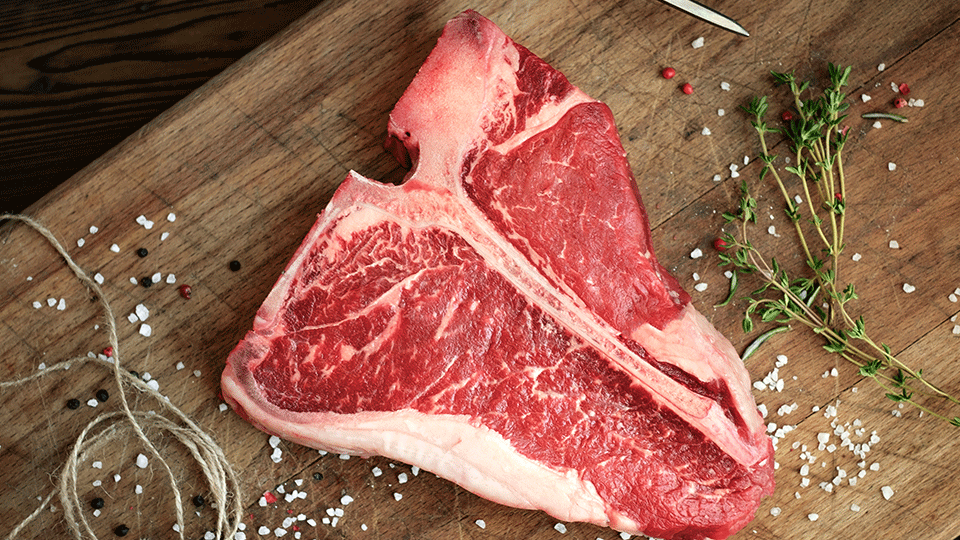 The T-Bone Steak is a favourite among many because you get to enjoy a tenderloin side and a striploin side. The 'T' shaped bone seperates the two cuts.