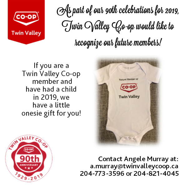 Email a.murray@twinvalleycoop.ca or call 204-773-3596 or 204-821-4045 to receive your onesie.