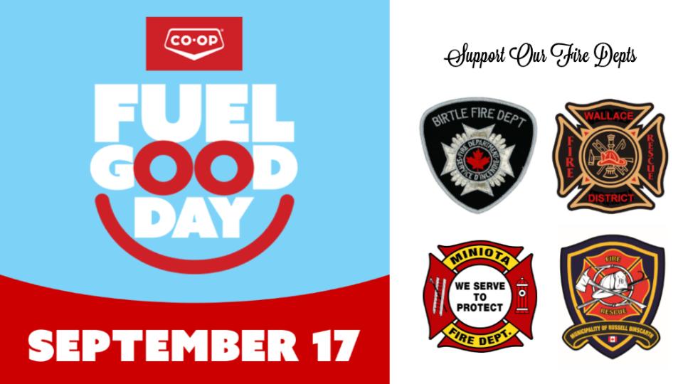 On September 17, fuel up at any participating Twin Valley Gas Bar location. Your local Co-op will donate 10ยข per litre sold to the local Fire Department in Birtle, Elkhorn, Miniota and Russell.