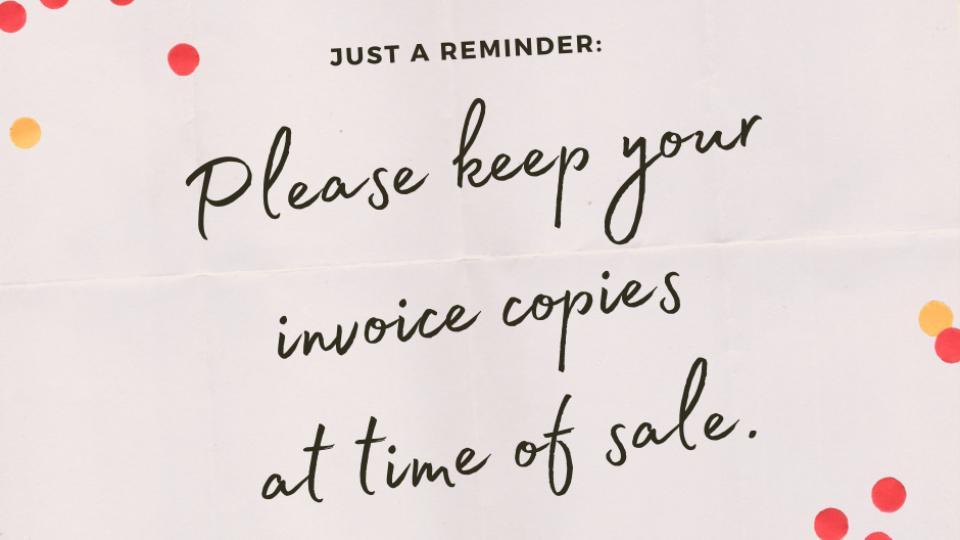 Since this will remain in place, we remind all members to retain their invoice copies at the time of purchase. As a temporary transitional measure, we are emailing reprints of invoice detail on request. Thank you for your understanding.