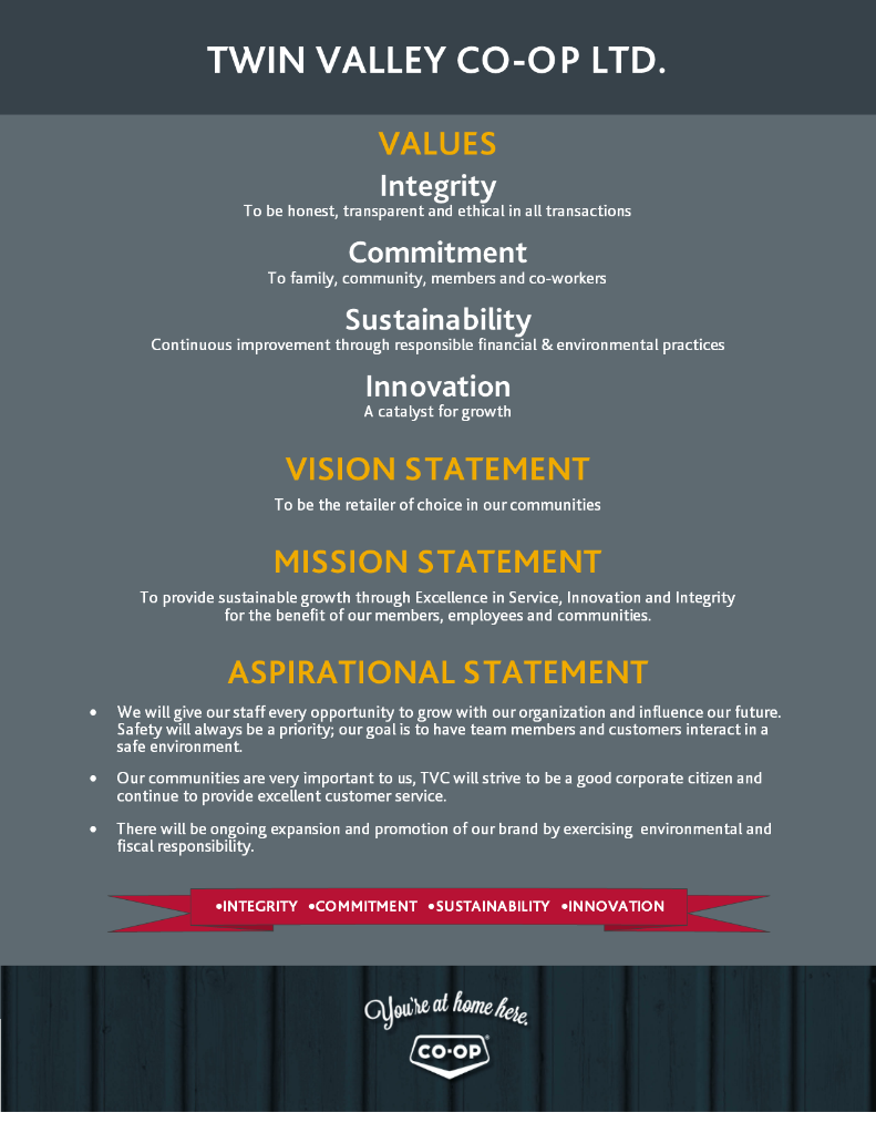 Values Vision Mission Aspirational Statement - Twin Valley Co-op