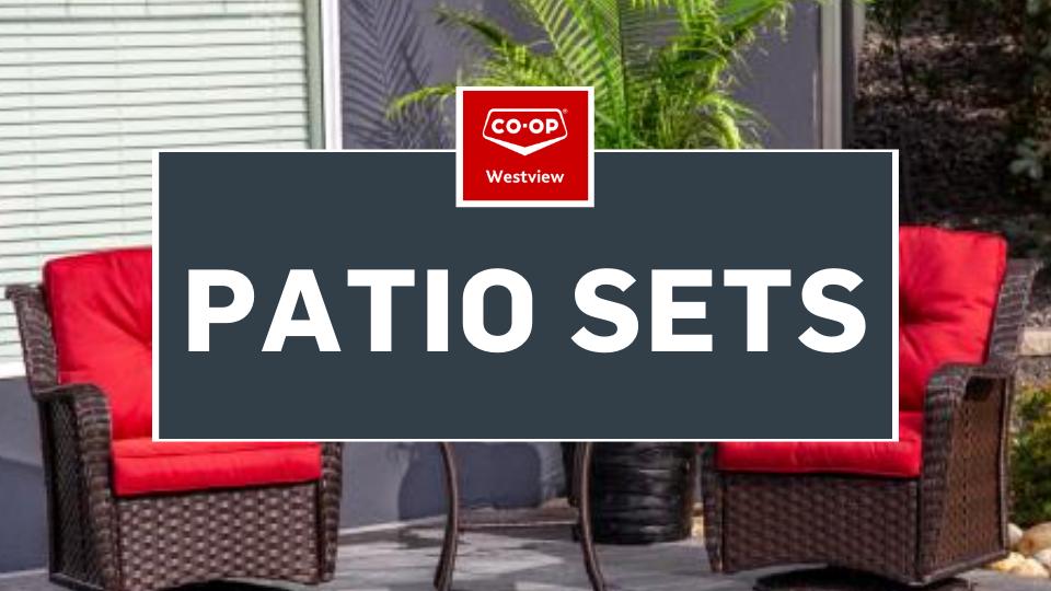 There is a wide variety of outdoor furniture available at Co-op, including lounge sets, conversation sets, bistro sets and more. While in-store availability may vary, you can always order your favourite set from our Outdoor Living Collection through your local Co-op Home Centre.